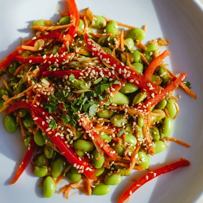 Save One humid afternoon, my neighbor brought over a container of edamame salad from a new Asian fusion spot downtown, and I remember being struck by how the sesame oil caught the light as she stirred it. The simplicity was deceptive—just beans and vegetables, but the dressing sang with ginger and garlic in a way that made me want to recreate it immediately. I've made it dozens of times since, and it's become my go-to when I need something that feels both nourishing and exciting without spending hours in the kitchen.