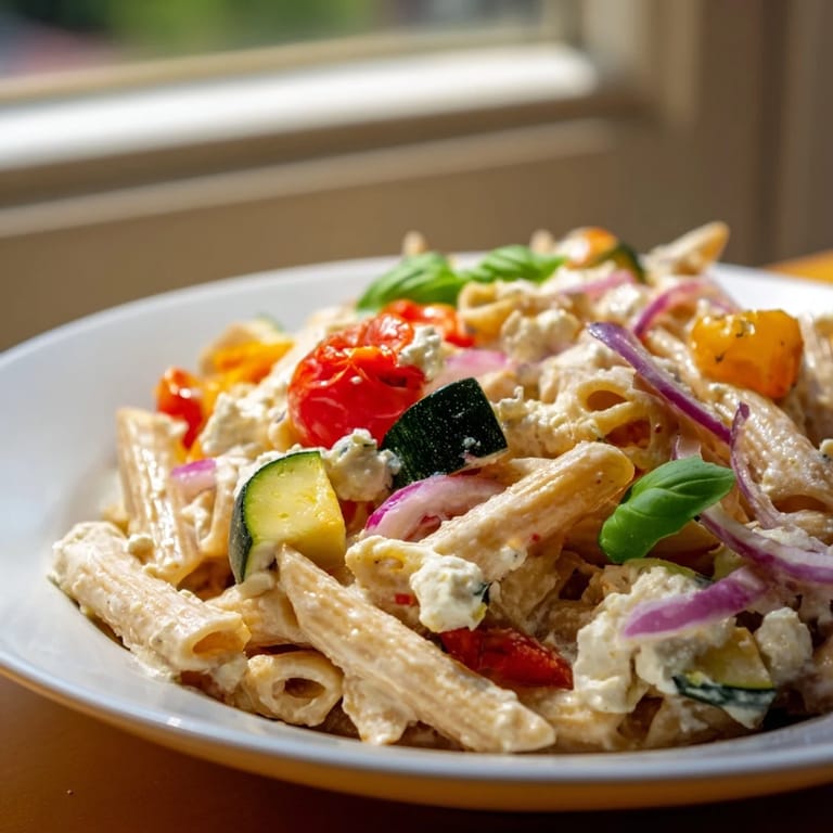 Save I discovered this dish purely by accident, scrolling through my phone at midnight when I should have been sleeping, and something about the way the golden feta melted into that tangle of roasted vegetables just made sense. The original viral version felt a bit heavy for what I usually crave on a weeknight, so I started playing around—swapping in whole-grain pasta, loading up on summer vegetables, cutting back the cheese just slightly. What emerged was something that felt lighter but somehow more satisfying, like comfort food that doesn't weigh you down. It became my go-to when I wanted to feel good about dinner without the fuss.