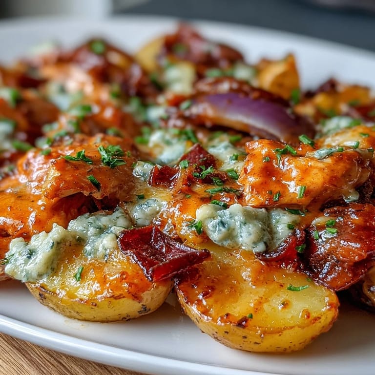 Save My roommate came home one Thursday night craving something bold and comforting, and I had chicken, potatoes, and a bottle of buffalo sauce taking up real estate in my fridge. What started as a lazy idea—just toss it all together and let the oven do the work—turned into the kind of dish that made the whole apartment smell incredible within minutes. The combination of tangy buffalo and creamy ranch hit different than I expected, and watching those golden potatoes crisp up alongside juicy chicken felt like discovering a shortcut to actual cooking talent.
