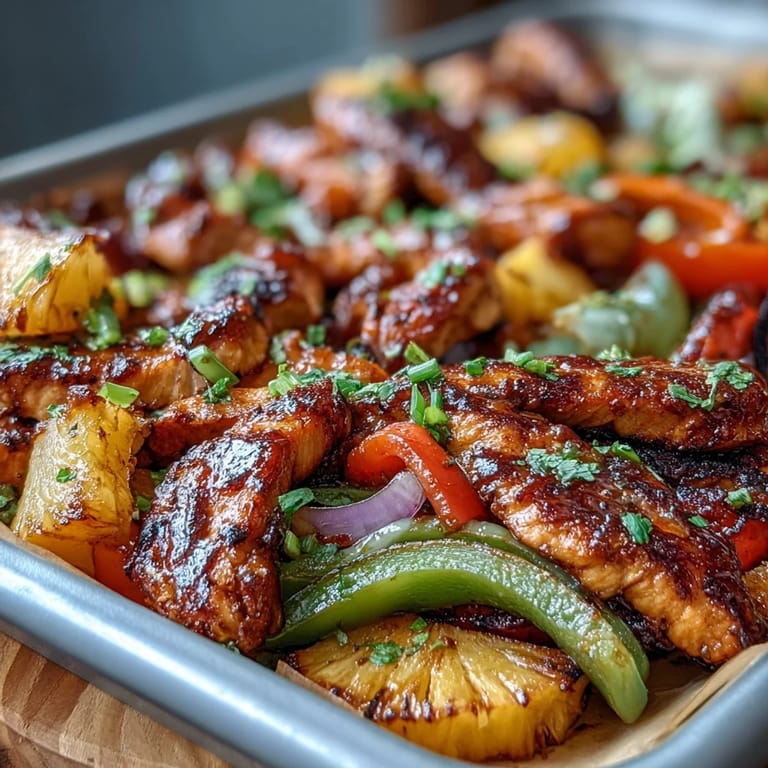 Save My sister called me mid-afternoon asking if I could throw together something fast but impressive for dinner that night. I had chicken thawing, a pineapple getting soft on the counter, and the kind of mood where I wanted everything on one pan. That's when sheet pan fajitas with pineapple suddenly made perfect sense—no pile of dishes at the end, just caramelized edges and that sweet-savory thing that makes people pause mid-bite and ask what you did differently.