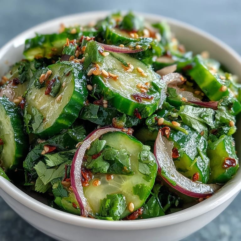 This salad shines brightest in summer when cucumbers taste like they were picked that morning and cilantro is practically growing in your yard. It's the perfect side for grilled fish, spicy Asian dishes, or even alongside something rich like tacos or curry—it cuts through heaviness with its brightness and leaves you feeling refreshed instead of weighed down. I've also served it alongside cold noodles on evenings when I didn't want to turn on the oven, and it transformed the whole meal into something that felt intentional rather than cobbled together.