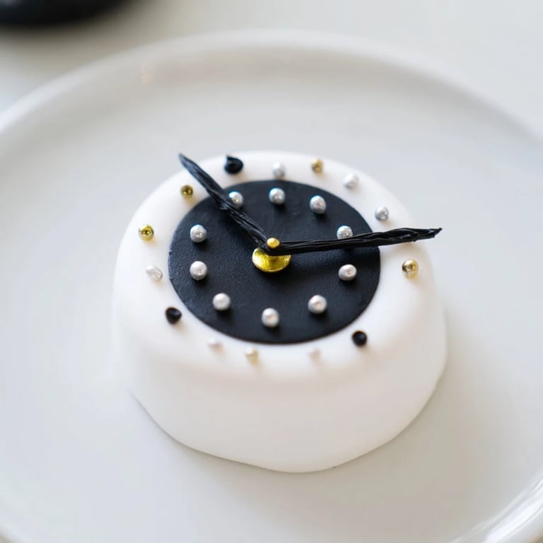- Decorations: Edible gold or silver pearls Mini chocolate chips or black decorating gel (for clock hands/numbers) Sprinkles (optional)