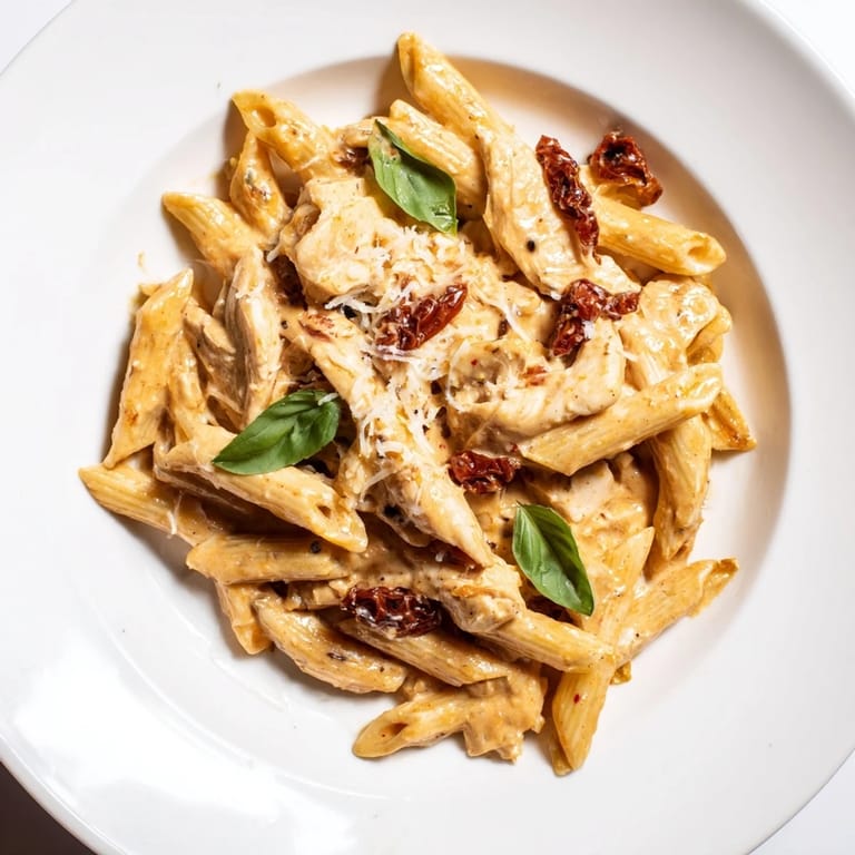Save The smell of garlic hitting warm olive oil always pulls me into the kitchen, no matter what else I am doing. This pasta dish came together on a Tuesday evening when my refrigerator had random ingredients and I needed something that felt like a hug on a plate. The sun-dried tomatoes add such an intense punch of umami that my husband actually asked what restaurant I ordered from.
