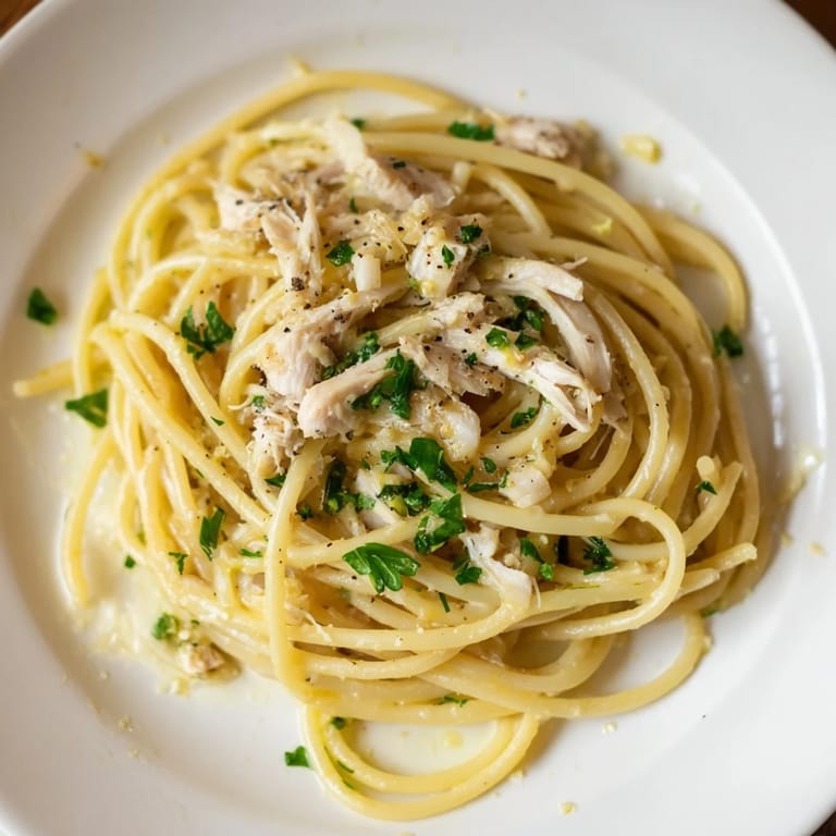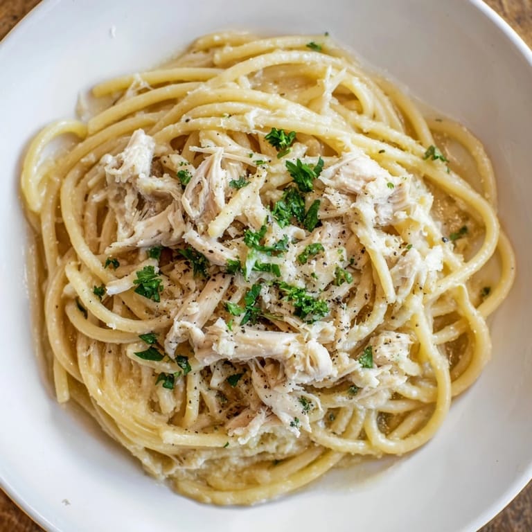 Save There's something about the smell of garlic hitting hot butter that makes you stop whatever you're doing and pay attention. I learned this dish one weeknight when I had exactly three things in my kitchen: pasta, butter, and a container of rotisserie chicken I'd grabbed on autopilot. What I thought would be a forgettable dinner turned into the kind of meal that reminds you why Italian cooking doesn't need to be complicated. The bucatini's hollow center catches every drop of that golden, garlicky sauce, and suddenly you're tasting something that feels both effortless and deeply satisfying.