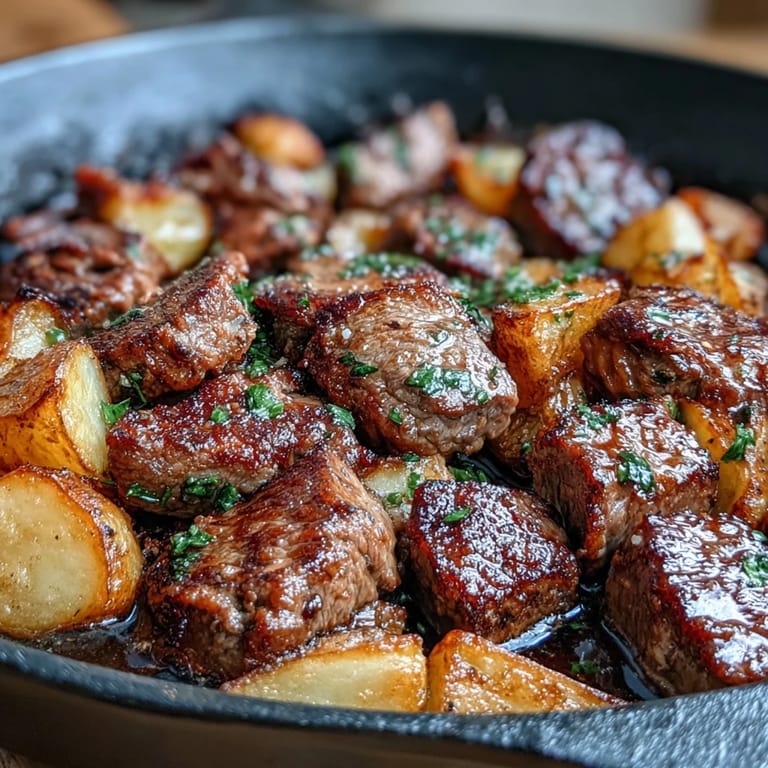 Save There's something about the sound of steak hitting a hot skillet that just stops you mid-conversation. A few years back, I was craving that deep, savory comfort of pot roast but didn't have three hours to babysit the oven, so I threw together sirloin cubes and baby potatoes in a cast iron pan instead. Twenty-five minutes later, the kitchen smelled like a steakhouse, and honestly, this skillet version became the weeknight dinner I reach for when I want to feel like I've actually cooked something.