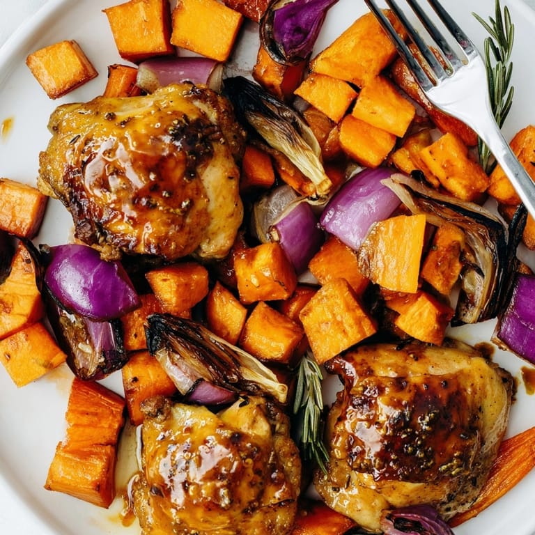Save Succulent chicken thighs cooked to golden perfection under a sticky honey glaze fill the house with sweet aroma as they roast with a mix of root vegetables. This is the kind of satisfying one pan dinner that feels as welcoming on a weeknight as it does front and center at a cozy gathering. Every bite brings together the floral notes of honey earthy herbs and caramelized edges on the vegetables making it both nourishing and irresistible.