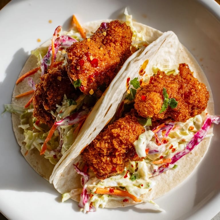 Life in the kitchen is about working with what you have and what you love. If deep-frying isn't your style, bake the breaded chicken at 425°F for 18-20 minutes, flipping halfway through—you'll lose a bit of crunch but gain simplicity. Greek yogurt replaces mayonnaise beautifully if you want tanginess with less fat, and a splash of white vinegar can stand in for apple cider vinegar if that's what's in your pantry. The soul of these tacos—the interplay of spicy, sweet, and bright—survives any reasonable swap.