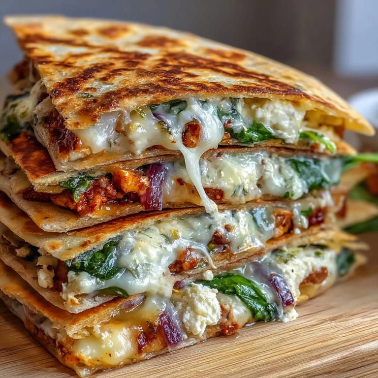 Save The smell of garlic hitting olive oil always pulls me into the kitchen, no matter what else I'm doing. These quesadillas started as a Tuesday night experiment when I had wilting spinach and half a block of feta that needed using. Now they're the most requested thing at my casual dinner parties, proof that some of the best meals happen when you work with what you have.