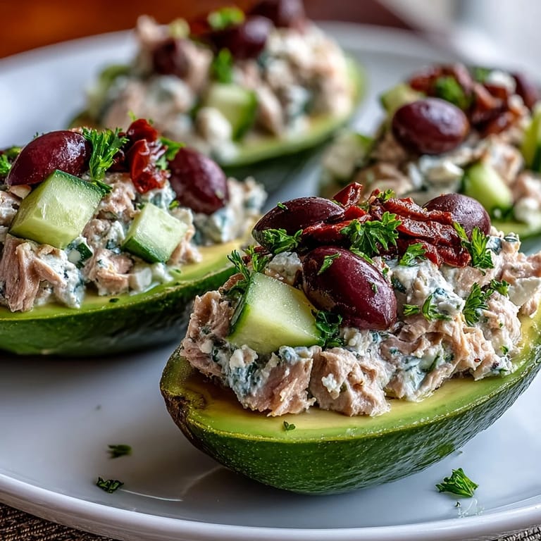 The beauty of stuffed avocados is that they feel substantial without being heavy. You get protein from the tuna and feta, healthy fats from the avocado and olive oil, and enough vegetables that your body feels genuinely nourished rather than just full. The Mediterranean flavors keep everything bright and interesting, so you don't find yourself eating mechanically.
