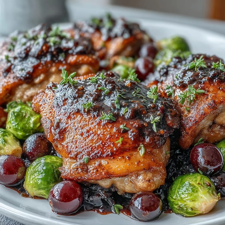 Save My neighbor stopped by one evening asking what smelled so good wafting from my kitchen, and when I opened the door, the aroma of caramelizing grapes and balsamic hit us both at once. That's when I knew this sheet pan dinner had something special—it's the kind of meal that announces itself before you even taste it. The combination of juicy grapes bursting beside tender chicken thighs felt like an accident at first, but it became intentional magic. It's become my go-to when I want something that looks restaurant-quality but takes barely any effort.