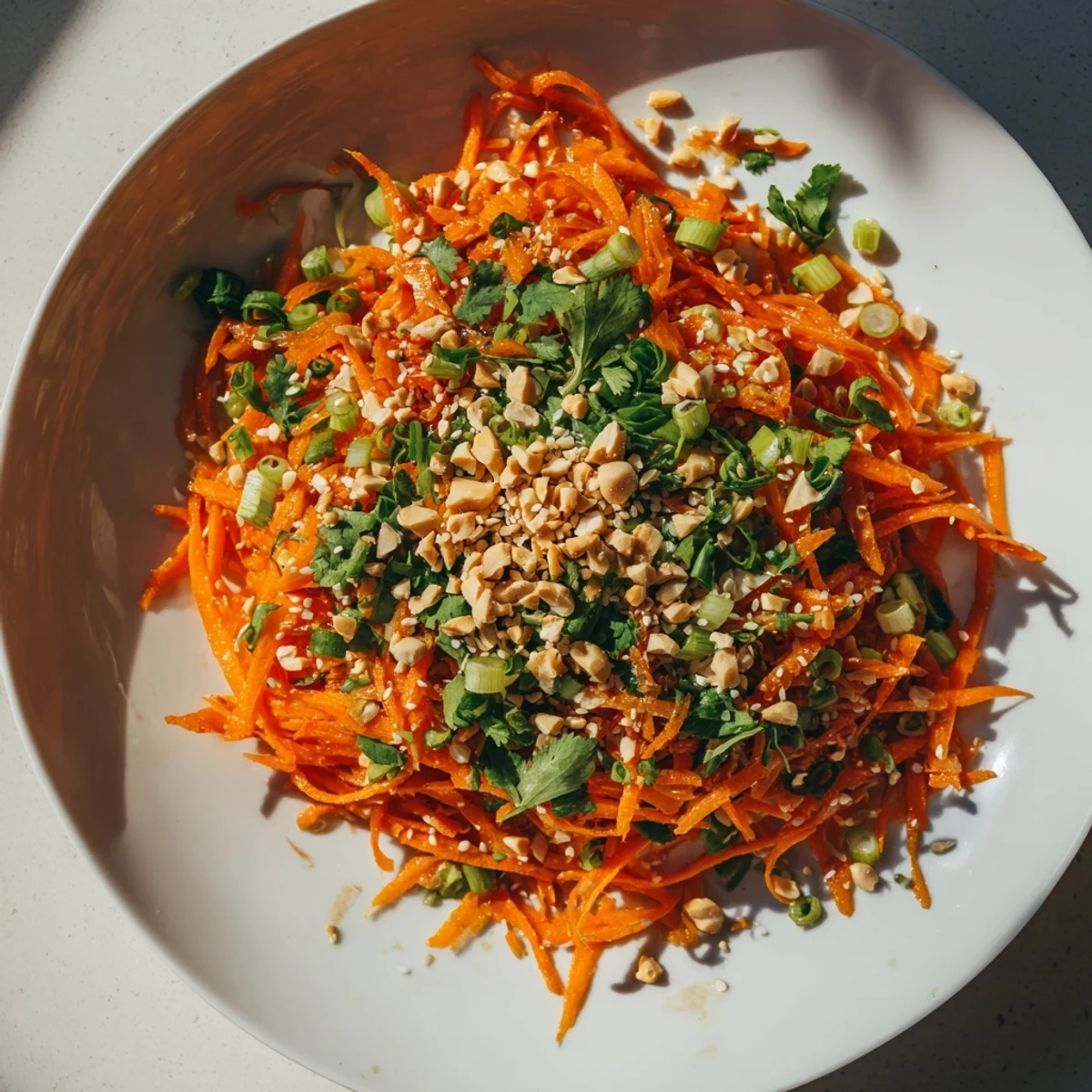 What makes this salad different from other vegetable sides is how the dressing transforms humble carrots into something crave-worthy. The heat, acidity, and nuttiness work together like a good conversation, each flavor taking its turn without stepping on anyone's toes. It's also vegan and dairy-free by nature, which means it plays well with almost any main dish you pair it with.
