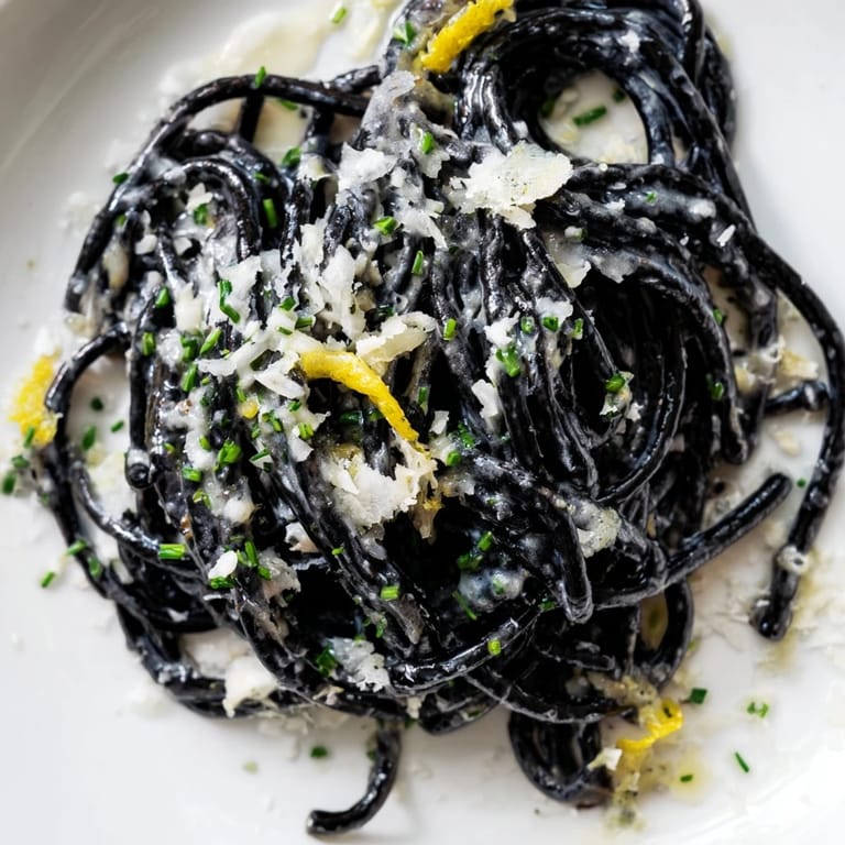 Save I accidentally discovered squid ink pasta during a rainy afternoon in a small Italian deli when the shopkeeper insisted I try his newest shipment. The dramatic black strands against the white ceramic plate at home sparked an obsession with this elegant ingredient. After several attempts at pairing it with various sauces, this silky cream version became my signature dinner party showstopper. The striking visual contrast between the midnight pasta and pale cream sauce creates a theatrical presentation that tastes as luxurious as it looks.