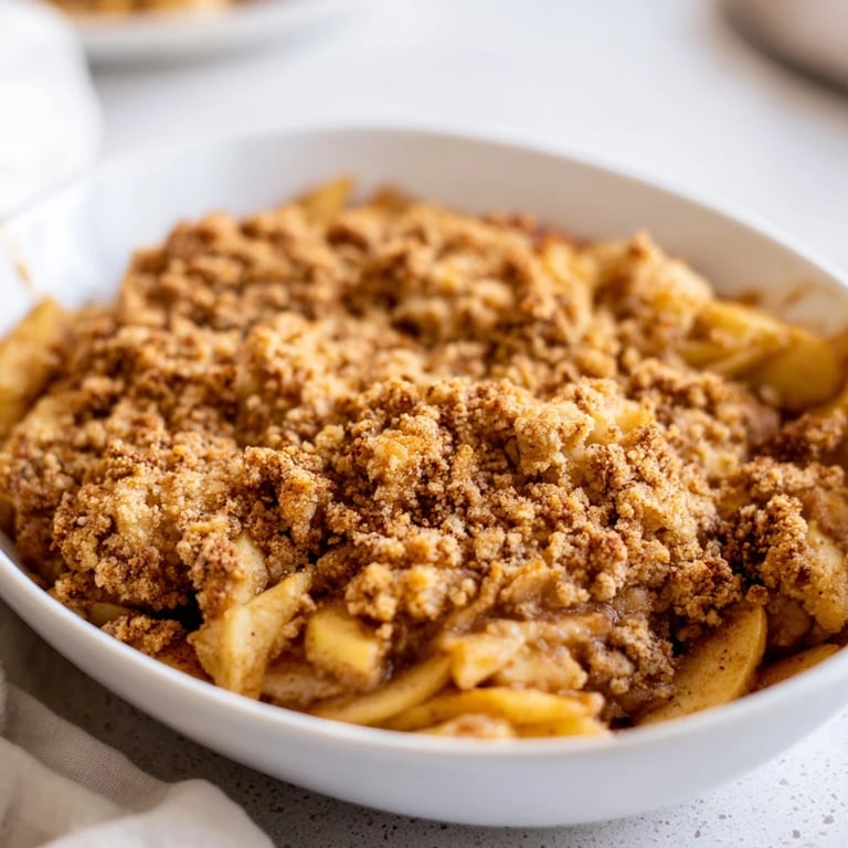 Save A comforting, golden-baked dessert featuring tender apples and a buttery cinnamon-infused crumble topping—perfect for cozy evenings.